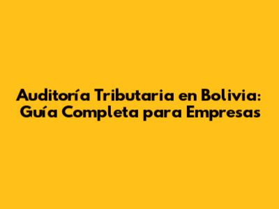 Auditoría Tributaria En Bolivia: Guía Completa Para Empresas