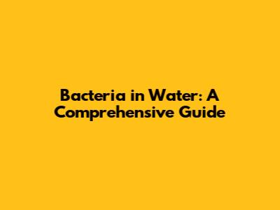 Bacteria In Water: A Comprehensive Guide