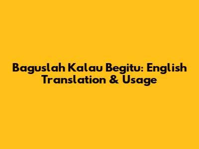 Baguslah Kalau Begitu: English Translation & Usage