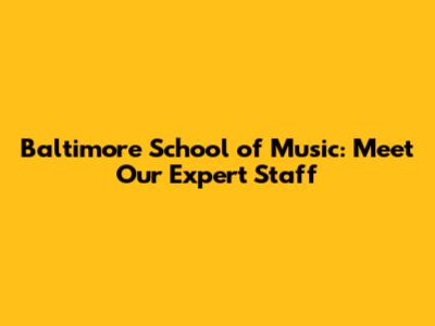 Baltimore School Of Music: Meet Our Expert Staff