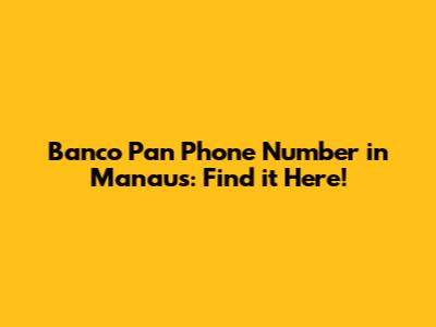 Banco Pan Phone Number In Manaus: Find It Here!