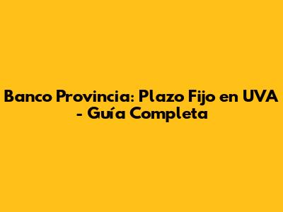 Banco Provincia: Plazo Fijo En UVA - Guía Completa