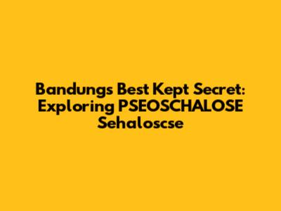 Bandung's Best Kept Secret: Exploring PSEOSCHALOSE Sehaloscse