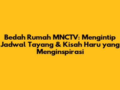 Bedah Rumah MNCTV hari ini! Siapa yang tak kenal dengan program televisi yang satu ini? Bedah Rumah telah menjadi salah satu acara favorit pemirsa televisi Indonesia, terutama bagi mereka yang mengagumi kisah-kisah inspiratif tentang perubahan hidup yang signifikan. Acara ini tidak hanya sekadar memberikan renovasi rumah, tetapi juga memberikan harapan baru dan semangat bagi mereka yang membutuhkan. Dalam artikel ini, kita akan membahas secara mendalam tentang Bedah Rumah MNCTV, mulai dari jadwal tayang terbarunya, kisah-kisah menarik di dalamnya, hingga dampak positif yang ditimbulkannya bagi masyarakat.