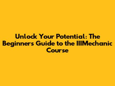 Beginner's Guide To The IIIMechanic Course