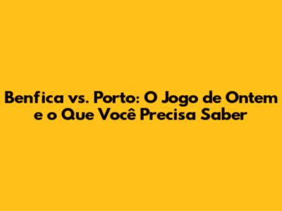 Benfica Vs. Porto: O Jogo De Ontem E O Que Você Precisa Saber
