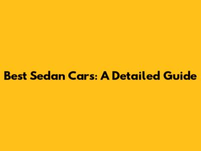 Best Sedan Cars: A Detailed Guide