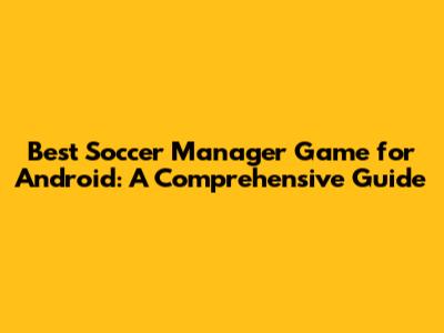 Best Soccer Manager Game For Android: A Comprehensive Guide