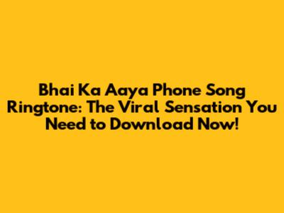 Bhai Ka Aaya Phone: Download The Viral Ringtone!