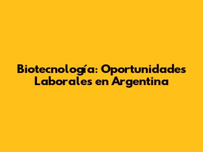 Biotecnología: Oportunidades Laborales En Argentina