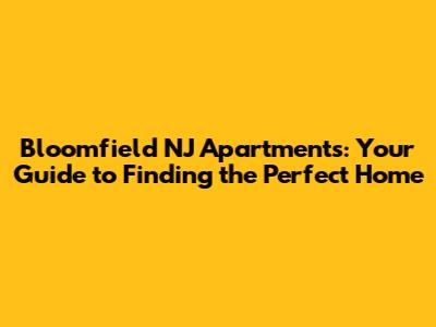 Bloomfield NJ Apartments: Find Your Dream Home