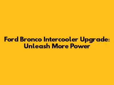 Boost Your Bronco: Ford Bronco Intercooler Upgrade Guide