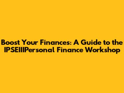 Boost Your Finances: A Guide To The IPSEIIIPersonal Finance Workshop