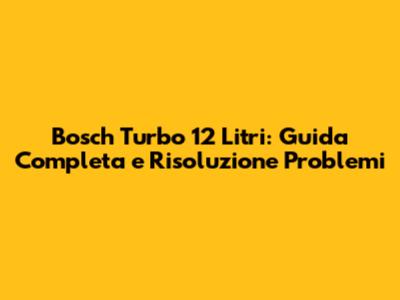 Bosch Turbo 12 Litri: Guida Completa E Risoluzione Problemi
