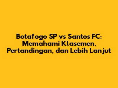 Guys, mari kita selami dunia sepak bola Brasil dan fokus pada salah satu topik yang paling dicari: klasemen Botafogo SP vs Santos FC. Pertemuan antara kedua tim ini selalu menarik perhatian para penggemar karena sejarah dan persaingan mereka. Dalam artikel ini, kita akan membahas semua yang perlu Anda ketahui tentang klasemen, pertandingan yang akan datang, dan analisis mendalam untuk membuat Anda tetap terinformasi dan terlibat. Jadi, bersiaplah untuk menyelami dunia sepak bola yang menarik ini!