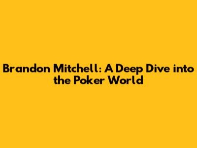 Brandon Mitchell: Unveiling The Poker Prodigy