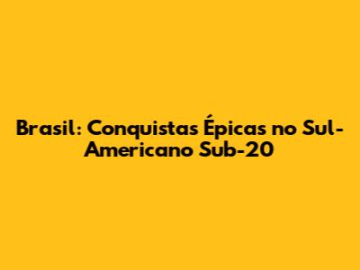 Brasil: Conquistas Épicas No Sul-Americano Sub-20