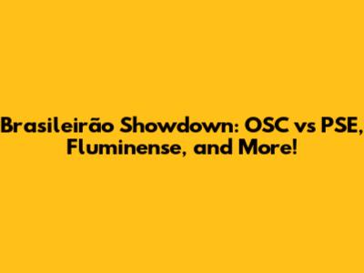 Brasileirão Showdown: OSC Vs PSE, Fluminense, And More!