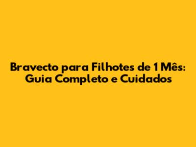 Bravecto Para Filhotes De 1 Mês: Guia Completo E Cuidados