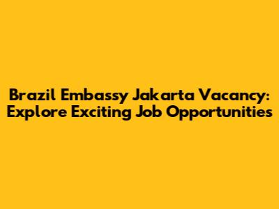 Are you seeking fulfilling career opportunities within an international environment? Look no further! The Brazil Embassy Jakarta Vacancy presents a gateway to dynamic job roles where you can contribute to fostering diplomatic relations and cultural exchange. This comprehensive guide unveils the latest job openings, application procedures, and essential requirements, empowering you to embark on a rewarding professional journey with the Brazil Embassy in Jakarta.