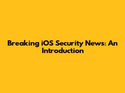 Breaking IOS Security News: An Introduction