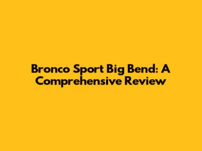 Bronco Sport Big Bend: A Comprehensive Review