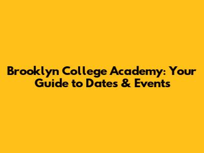 Brooklyn College Academy: Your Guide To Dates & Events