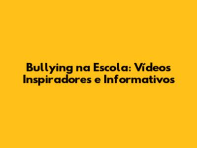 Bullying Na Escola: Vídeos Inspiradores E Informativos