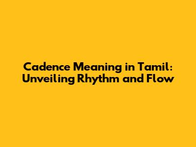 Cadence In Tamil: Understanding Rhythm & Flow