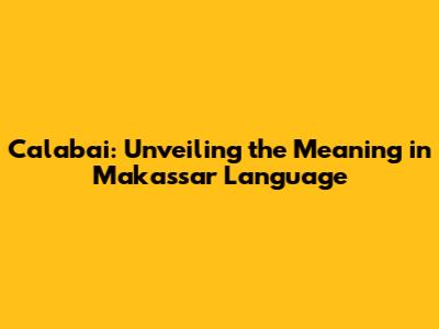 Hey guys, ever stumbled upon a word that just makes you scratch your head and go, "Huh? What's that?" Well, let's dive into one of those intriguing words today: calabai. Specifically, we're gonna unpack what it means in the Makassar language. Buckle up, because it's more than just a simple definition; it’s a whole cultural concept!