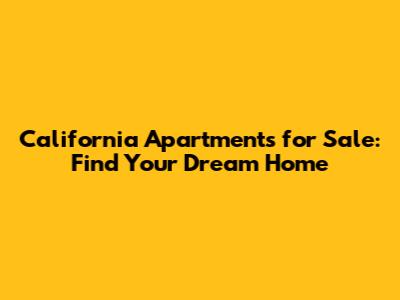 California Apartments For Sale: Find Your Dream Home
