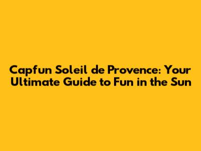Capfun Soleil De Provence: Your Ultimate Guide