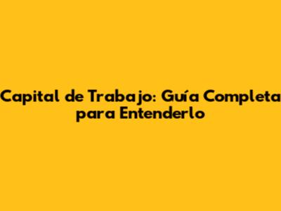 Capital De Trabajo: Guía Completa Para Entenderlo
