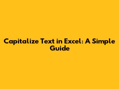 Step-by-Step Guide: How to Capitalize Text in Excel