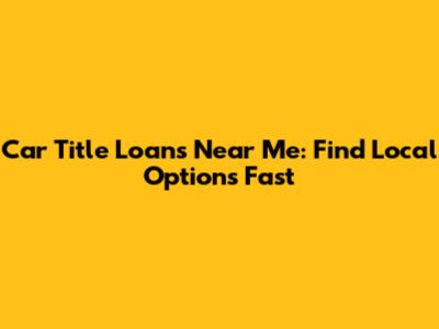 Car Title Loans Near Me: Find Local Options Fast