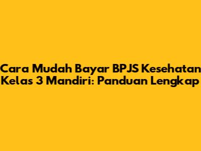Cara Mudah Bayar BPJS Kesehatan Kelas 3 Mandiri