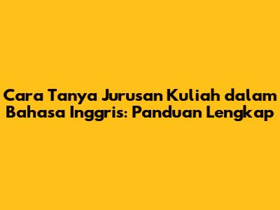 Cara Tanya Jurusan Kuliah Dalam Bahasa Inggris: Panduan Lengkap