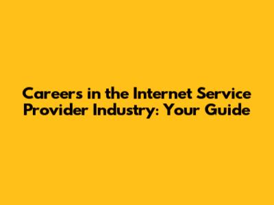 Careers In The Internet Service Provider Industry