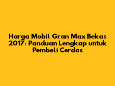 Harga mobil Gran Max bekas 2017 sangat bervariasi, tergantung pada kondisi dan faktor lainnya. Dengan melakukan riset yang cermat, pengecekan yang teliti, dan negosiasi yang baik, kalian bisa mendapatkan mobil impian dengan harga yang sesuai. Jangan lupa untuk melakukan perawatan rutin agar Gran Max bekas kalian tetap prima dan siap menemani perjalanan kalian. Selamat mencari Gran Max bekas 2017 yang cocok! Semoga artikel ini bermanfaat, ya!