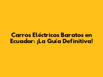 Encontrando Carros Eléctricos Baratos en Ecuador: ¡Misión Posible!