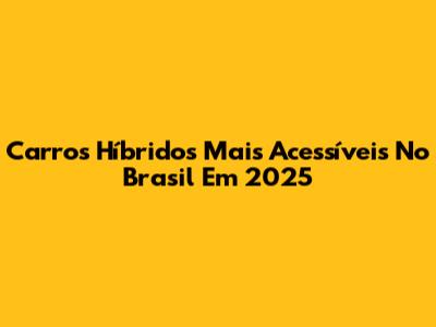 Carros Híbridos Mais Acessíveis No Brasil Em 2025