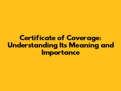 Certificate Of Coverage: What It Means And Why It Matters
