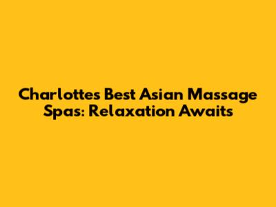 Charlotte's Best Asian Massage Spas: Relaxation Awaits