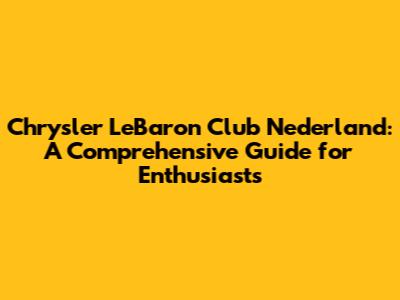 Chrysler LeBaron Club Nederland: Your Ultimate Guide