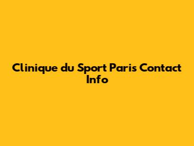 Clinique Du Sport Paris Contact Info