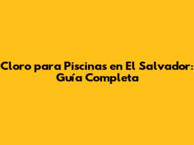 Cloro Para Piscinas En El Salvador: Guía Completa