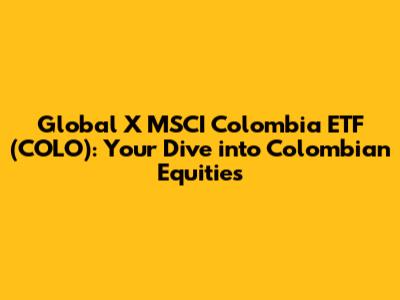 Hey guys! Ever wondered how to tap into the Colombian stock market? Well, the Global X MSCI Colombia ETF (COLO) might just be your ticket. This exchange-traded fund is designed to mirror the performance of the MSCI All Colombia Select 25/50 Index. In simpler terms, it aims to give you a piece of the action in some of the biggest and most influential companies in Colombia. If you're looking to diversify your investment portfolio and want to explore emerging markets, COLO could be an interesting option to consider. But, before you jump in, let’s break down what this ETF is all about, what it holds, and what makes it tick.