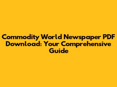 Commodity World Newspaper: Your PDF Download Guide