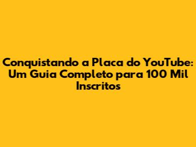 Conquiste Sua Placa Do YouTube: Guia Para 100 Mil Inscritos