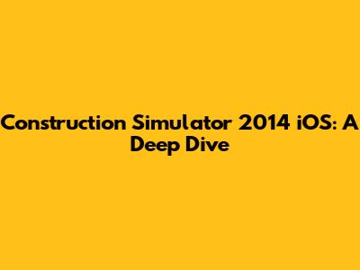Construction Simulator 2014 IOS: A Deep Dive